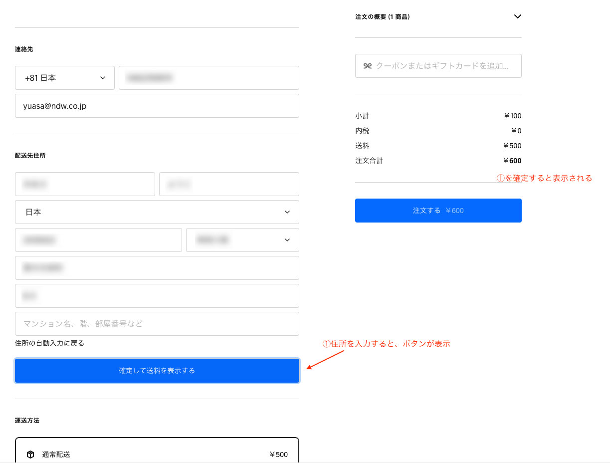 配送先の登録、運送方法、お支払い方法を設定します。お支払いについてはクレジットカードの他、バンドルカードもご利用頂けます。